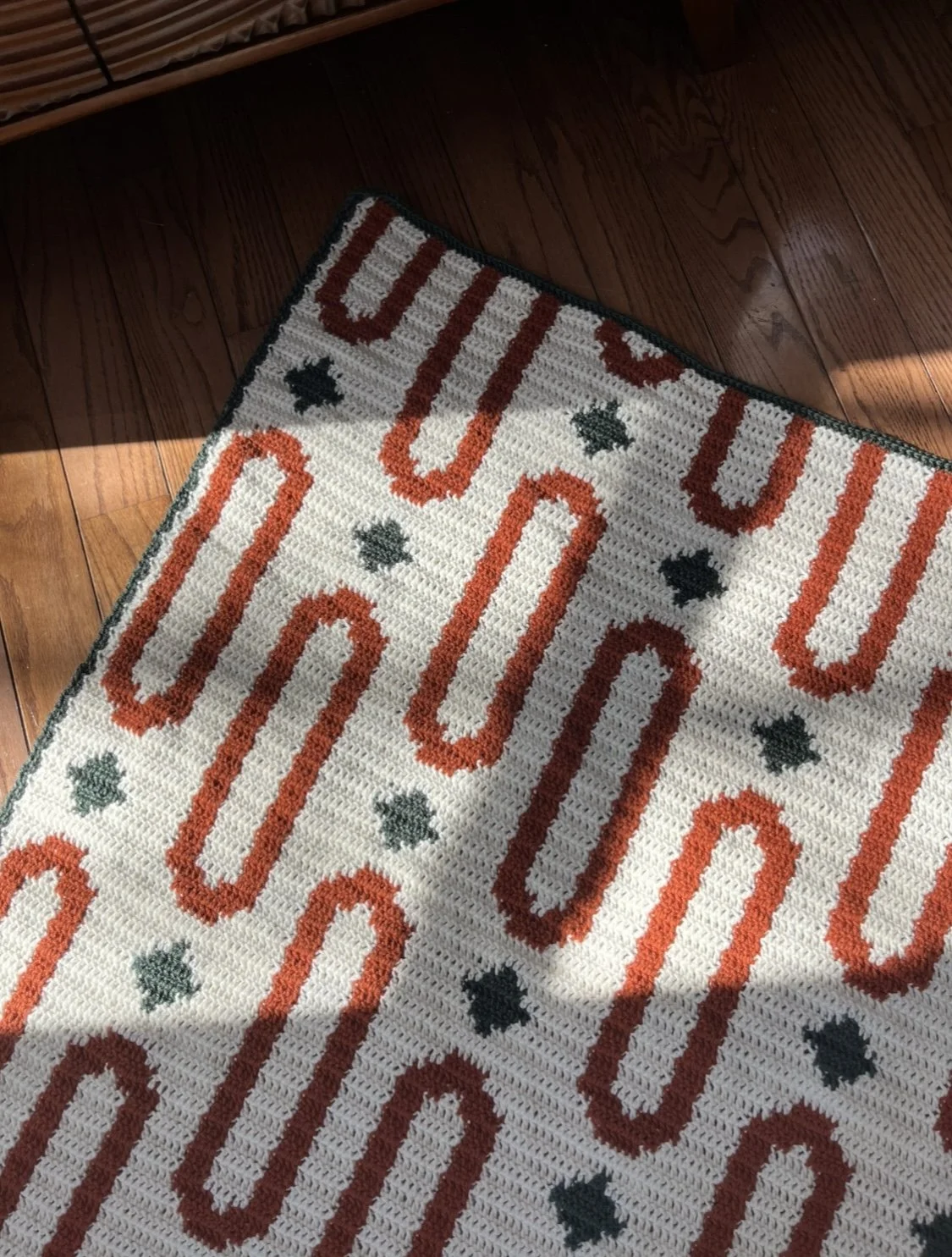This design is for sure my favorite of the three mid-century modern-inspired designs I’ve done. I loved the simplicity of the colorwork as I was making it, but love how it looks even more in my living space now — so clean, so chic, such a perfect color complement to tie everything together.